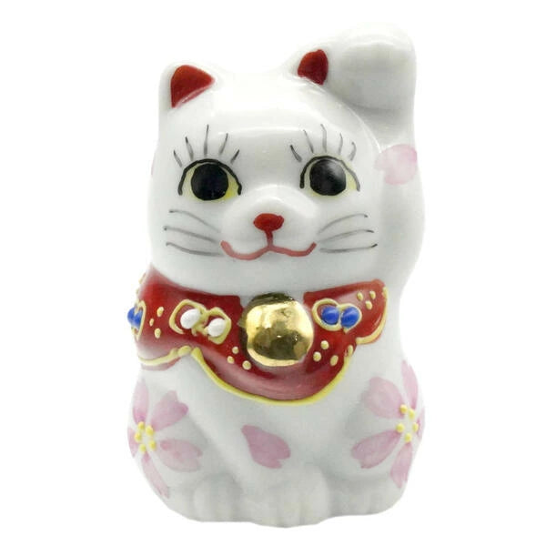 This listing is for a Kutani Yaki(ware) Japanese Mini Maneki-Neko (Beckoning Cat) Figure - Cherry Blossom / Pink / Left Hand -.