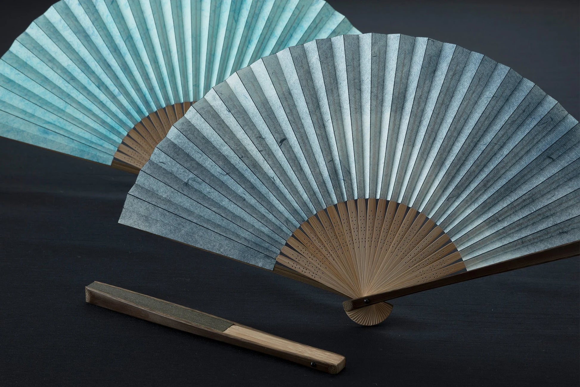 This listing is for a Kyo-sensu (Japanese folding fan) for Men - Kurotani Washi / Blue -.