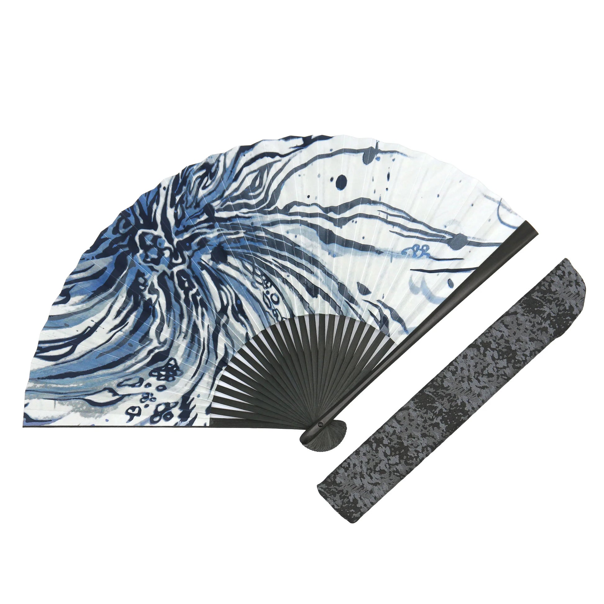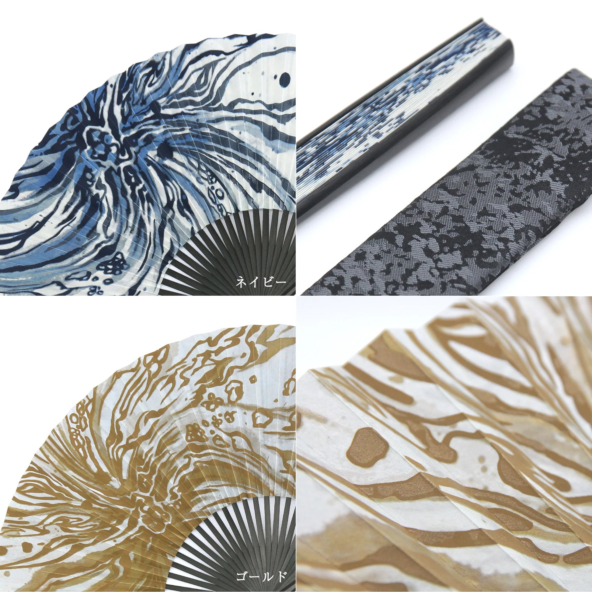 Kyo-sensu (Japanese folding fan) for Men - Line Art / Navy Blue - , Made in Kyoto, Japan , Kyoto sensu