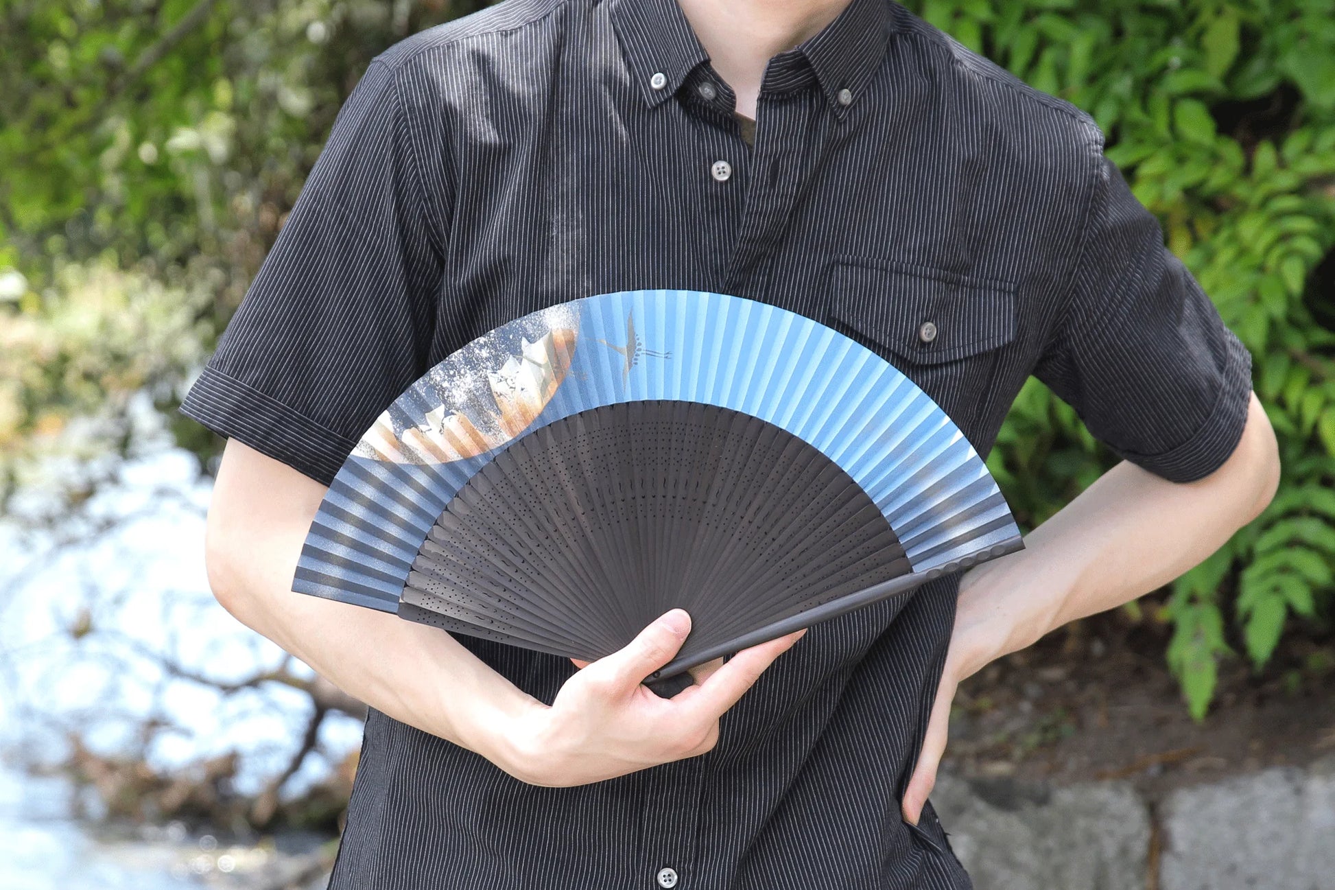 This listing is for a Kyo-sensu (Japanese folding fan) for Men - Moon and Crane -.