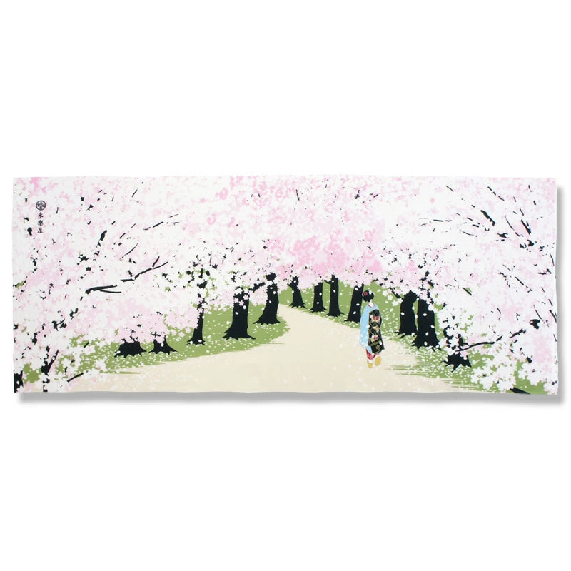 Kyo-Yuzen Dyeing Tenugui Towel (Japanese Hand Towel) - Cherry Blossom and Japanese Maiko -, Made in Kyoto, Japan