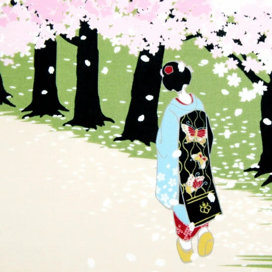 This listing is for a Kyo-Yuzen Dyeing Tenugui Towel (Japanese Hand Towel) - Cherry Blossom and Japanese Maiko -.