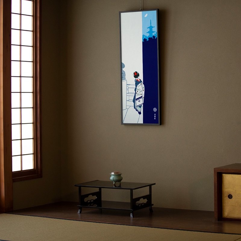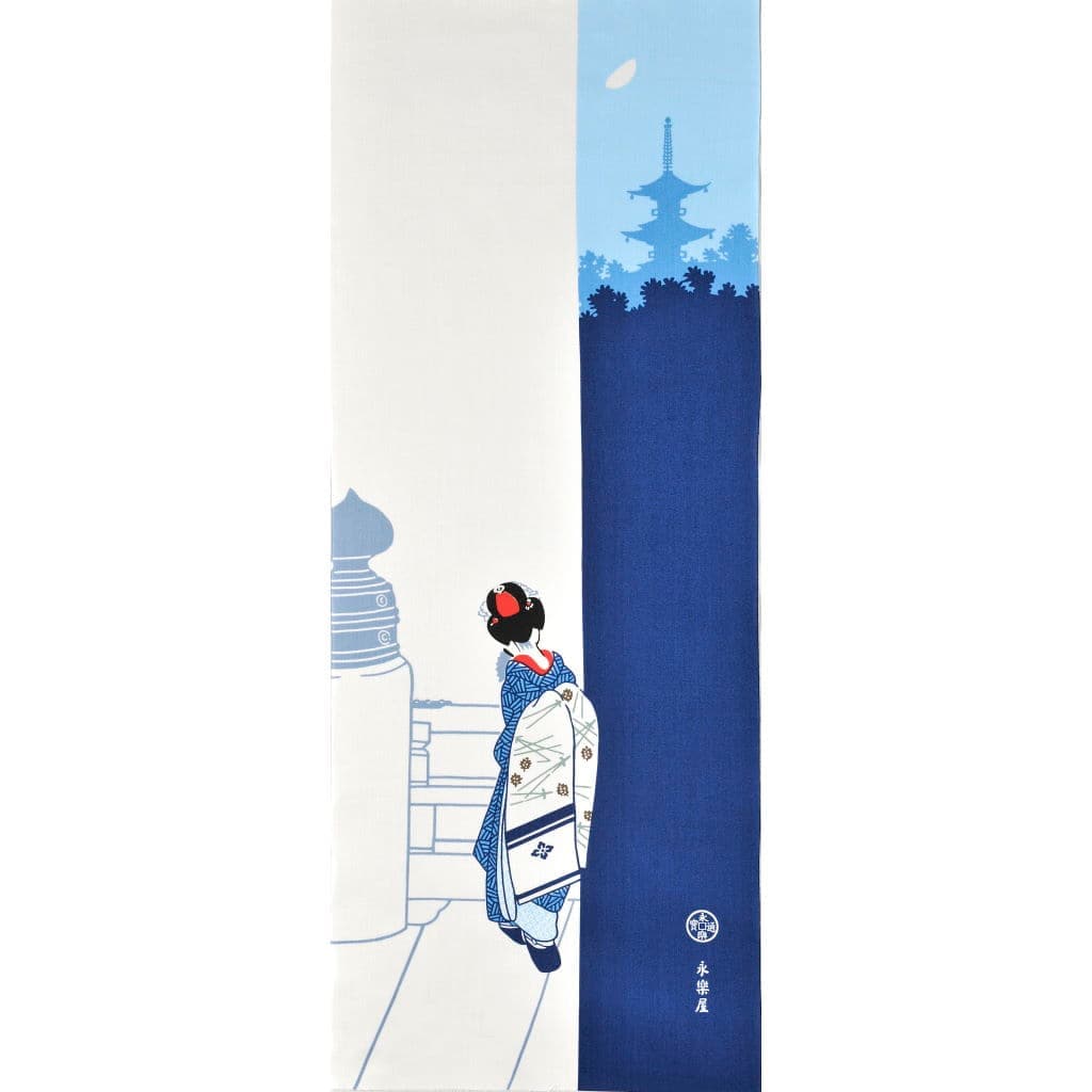 Kyo-Yuzen Dyeing Tenugui Towel (Japanese Hand Towel) - Japanese Maiko in Moonlit Night -, Made in Kyoto, Japan