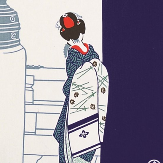 This listing is for a Kyo-Yuzen Dyeing Tenugui Towel (Japanese Hand Towel) - Japanese Maiko in Moonlit Night -.