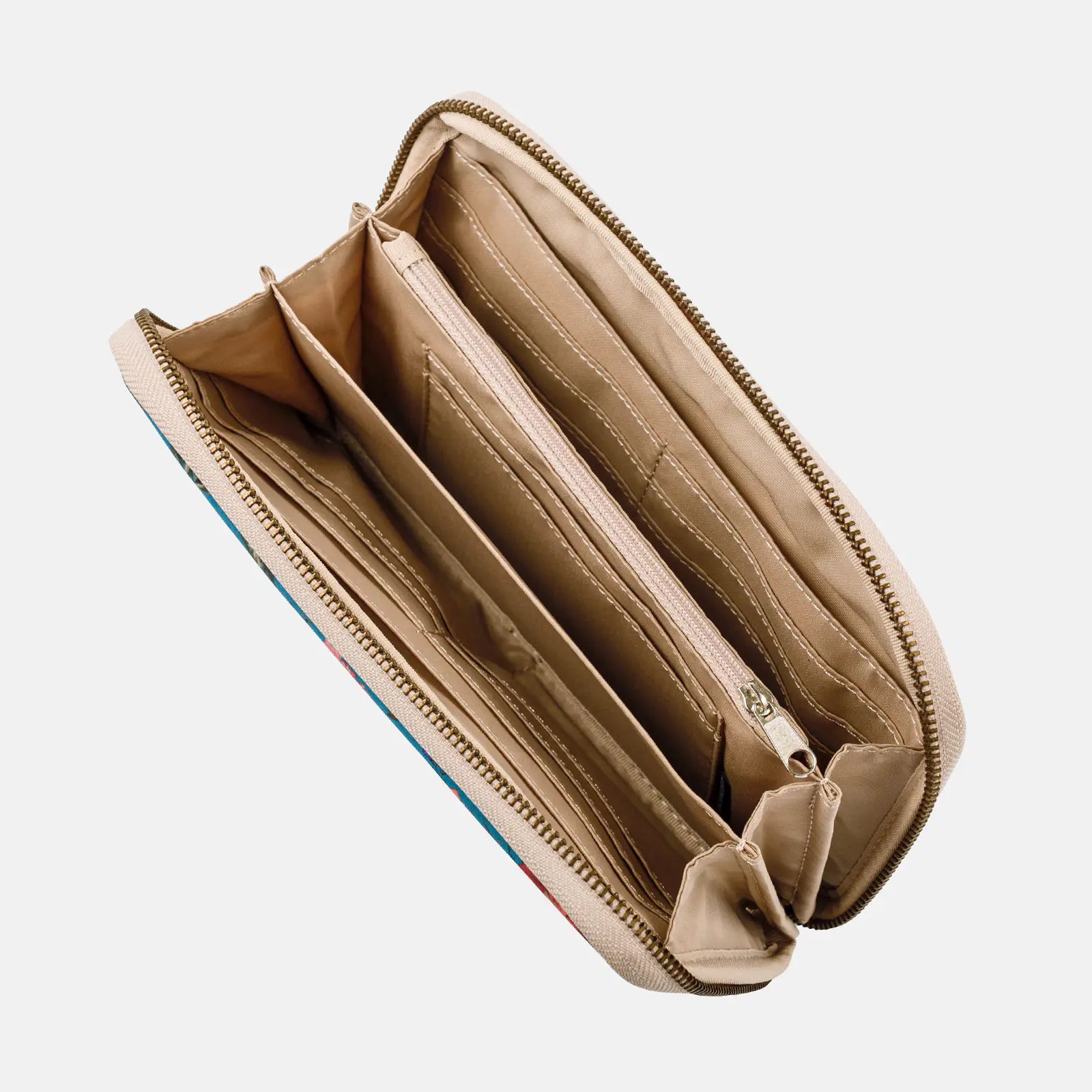 Decadent Blooms features a textile from Liberty Fabrics, which has fans all over the world. The dusky turquoise is printed with big peonies, roses, and forget-me-nots for a gorgeous, exotic look. The cover interior is beige, and the zipper pull includes a dark red tassel.