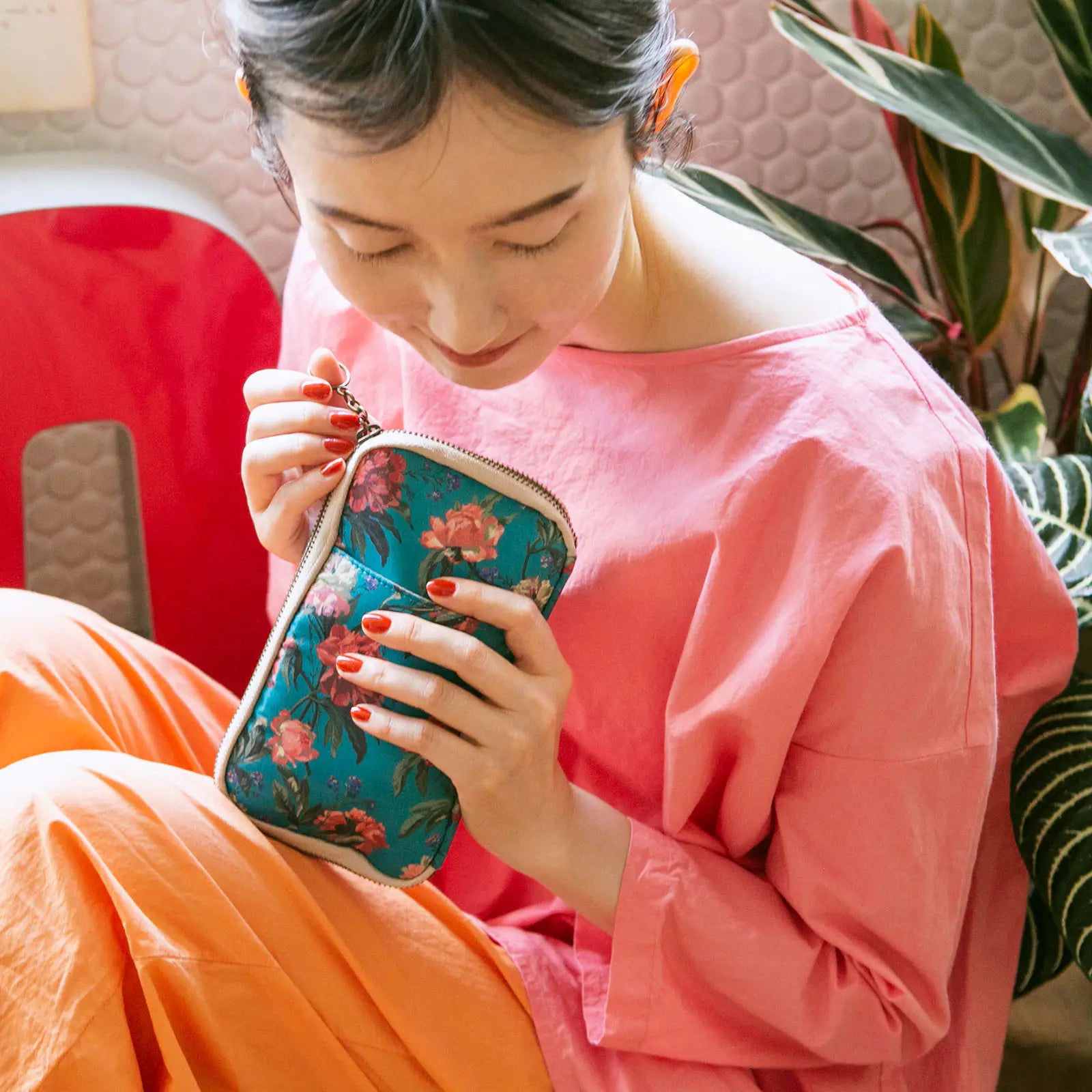 The pouch can hold many items, but its slim size and compact shape make it easy to fit into a purse or bag. A loop-shaped strap has been attached to the zipper to make it easy to hold.