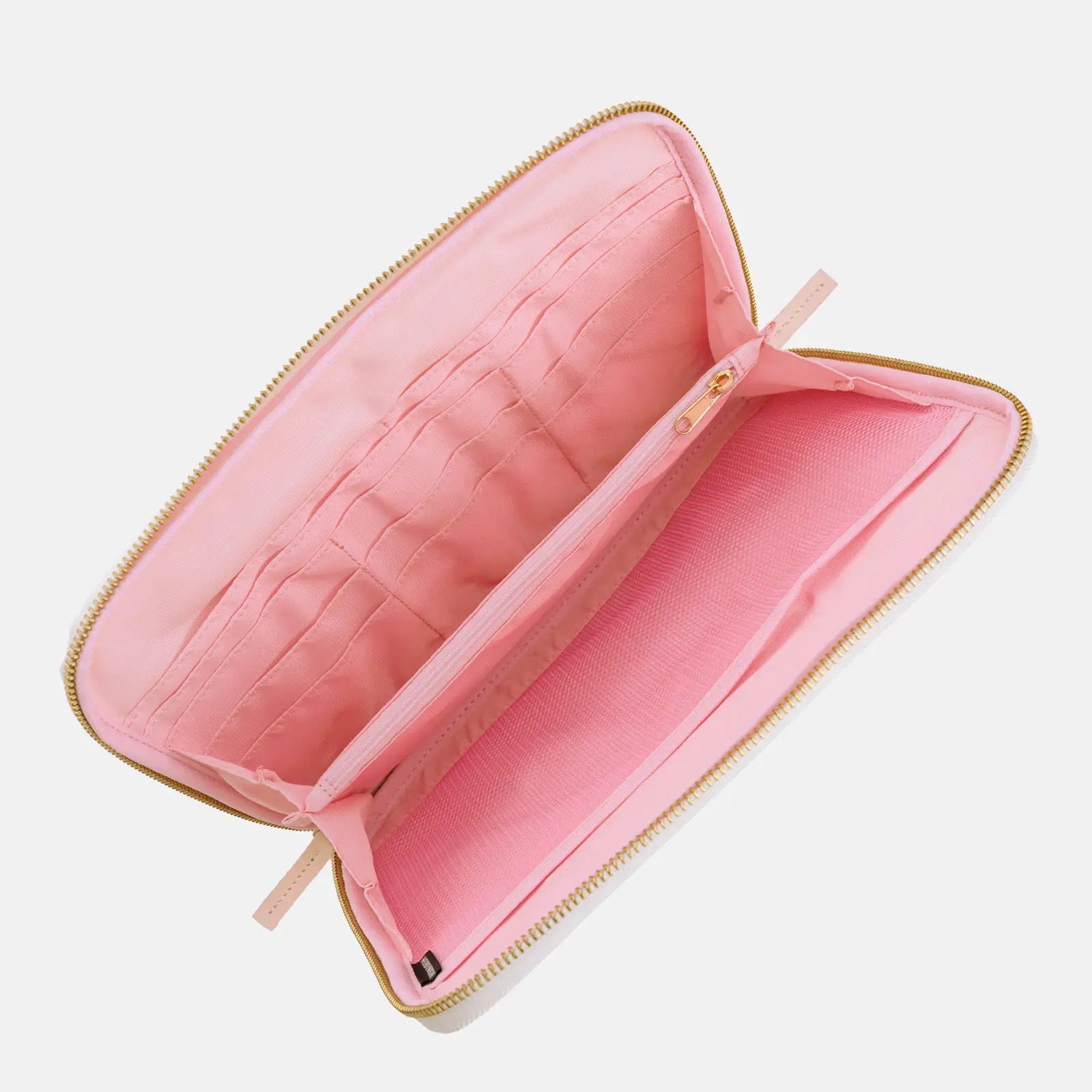 The Large Drawer Pouch’s accordion-style opening gives it plenty of room for accessories, stationery, cards, documents, checkbooks, and more while making it easy to organize all of them by category. The pouch includes two zipper pulls, making it easy to open from any point.