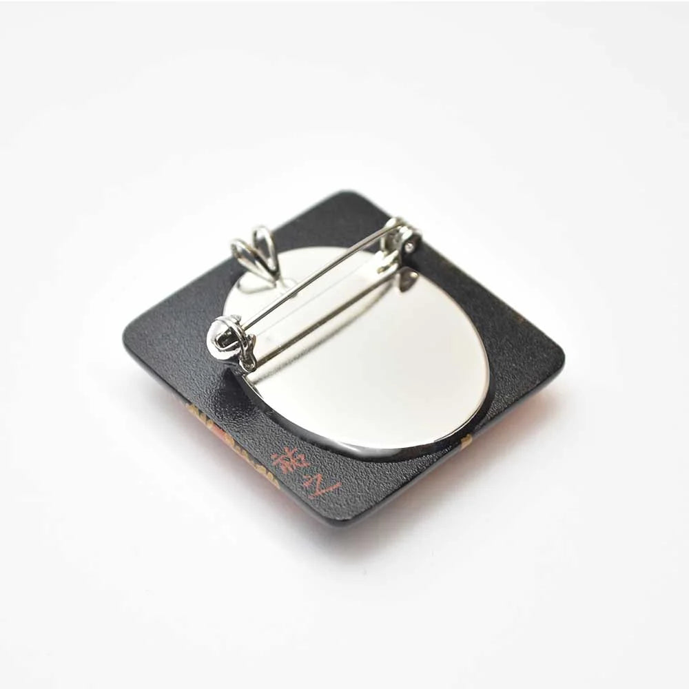 Maki-e Urushi Lacquer Brooch - Katsura(Japanese judas tree) / Gerbera -, Traditional Japanese Urushi Lacquer Jewelry