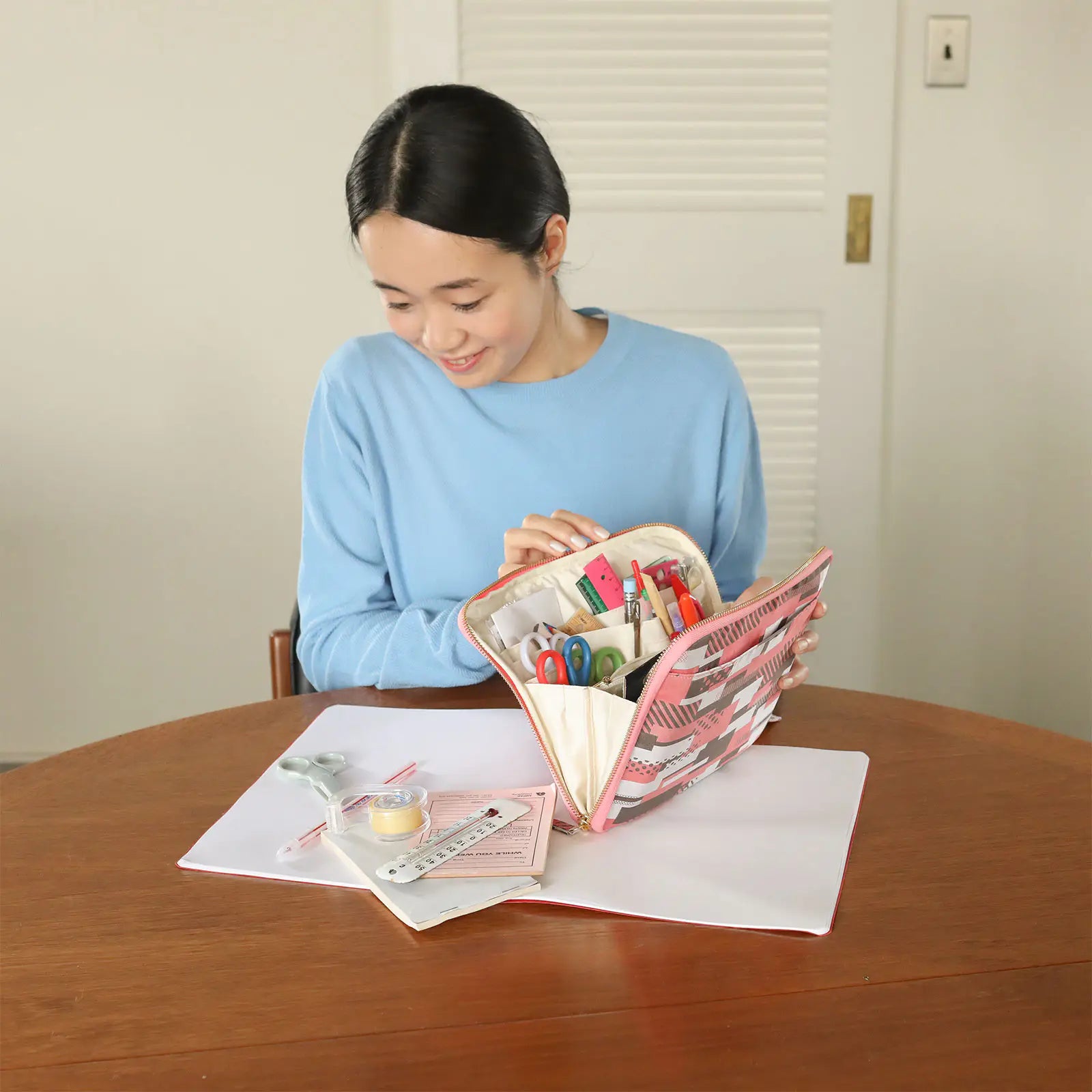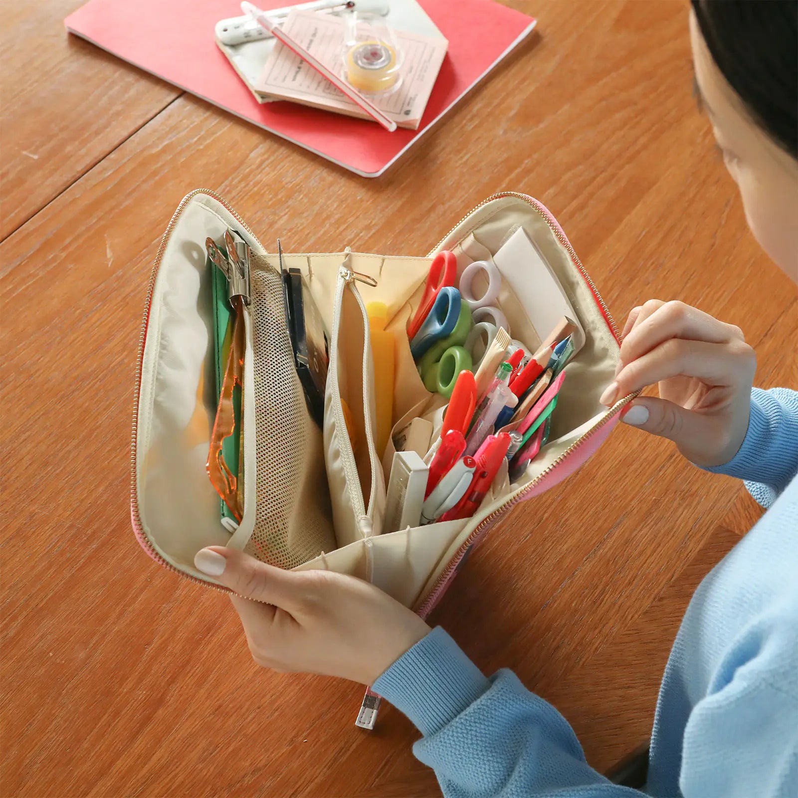 This pouch is like carrying an entire drawer with you wherever you go. Keep it on hand to easily access stationery whenever you need it, or use it on your desk to safely store your important items.