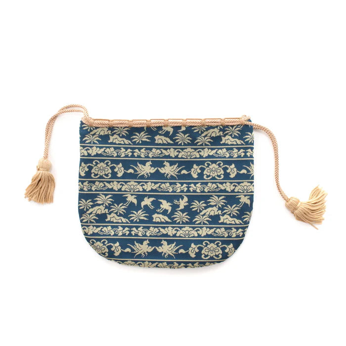 This listing is for a Nishijin-ori Small Drawstring Bag - Bird / Navy Blue -.