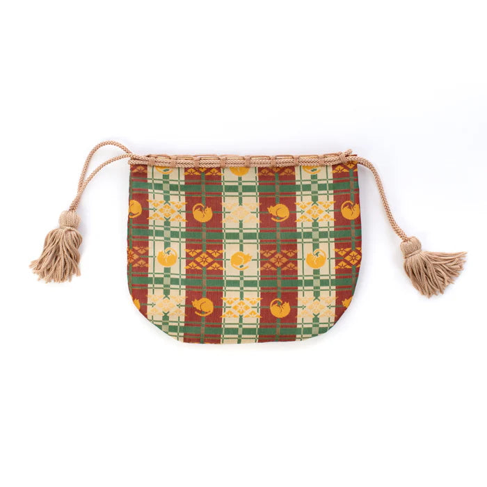 This listing is for a Nishijin-ori Small Drawstring Bag - Cat / Brown -.