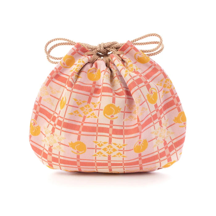 This listing is for a Nishijin-ori Small Drawstring Bag - Cat / Pink -.