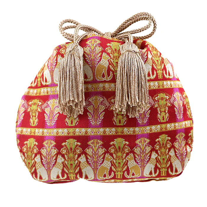 This listing is for a Nishijin-ori Small Drawstring Bag - Cat / Ruby -.