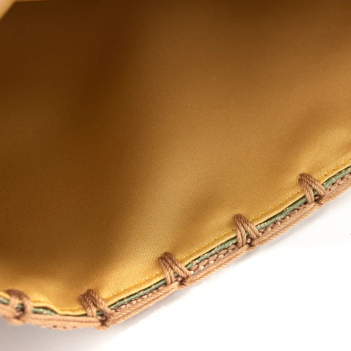 Nishijin-ori Small Drawstring Bag - Chrysanthemum and Peony Flowers / Green -, Made in Kyoto, Japan, Japanese traditional craft purse