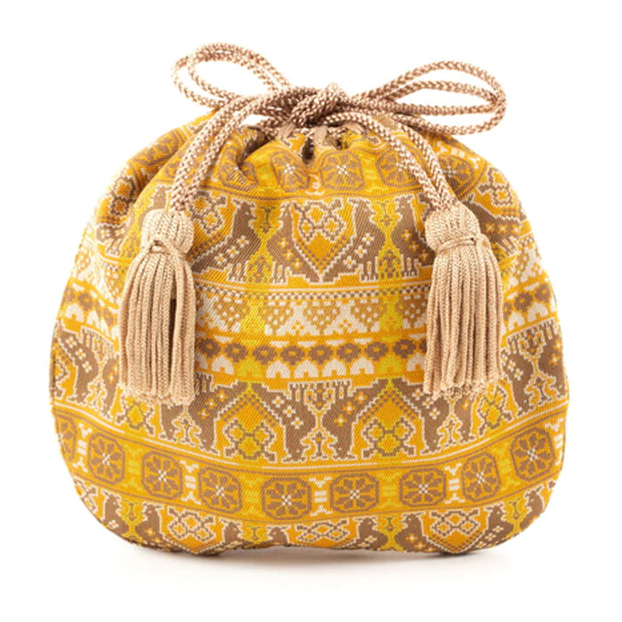 Nishijin-ori Small Drawstring Bag - Cock / Golden Brown -, Made in Kyoto, Japan, Japanese traditional craft purse
