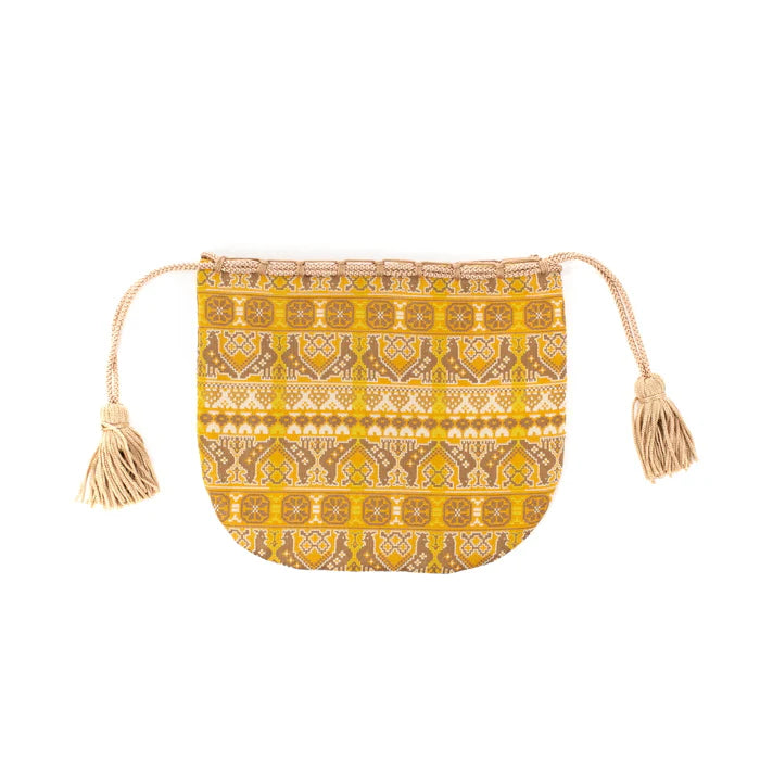 This listing is for a Nishijin-ori Small Drawstring Bag - Cock / Golden Brown -.