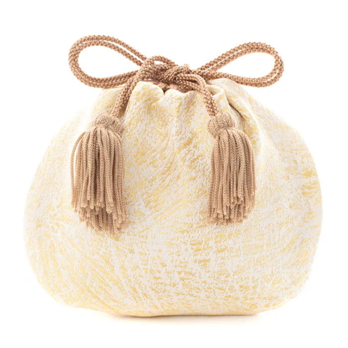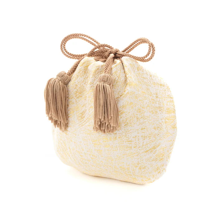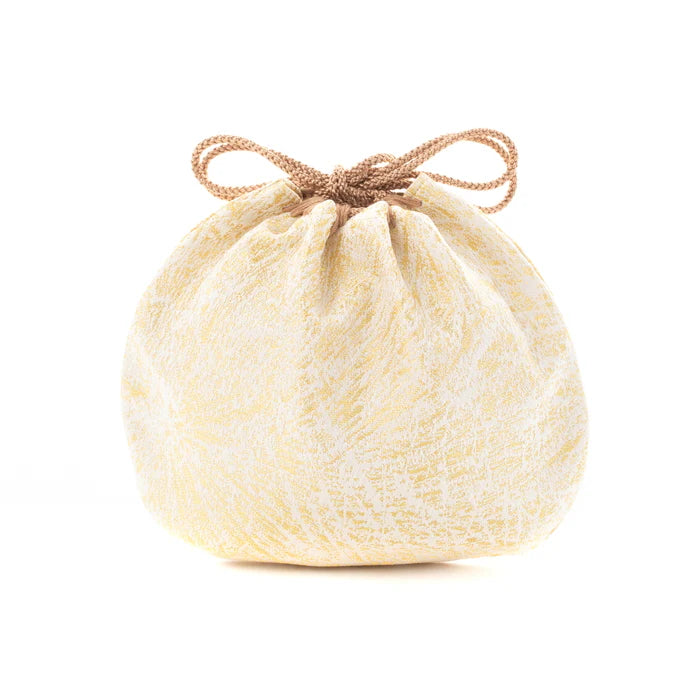 This listing is for a Nishijin-ori Small Drawstring Bag - Crumpled Pattern / Gold and White -.
