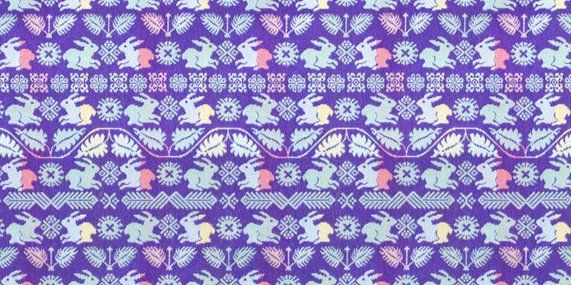 This listing is for a Nishijin-ori Small Drawstring Bag - Flower and Rabbit / Lapis Lazuli -.