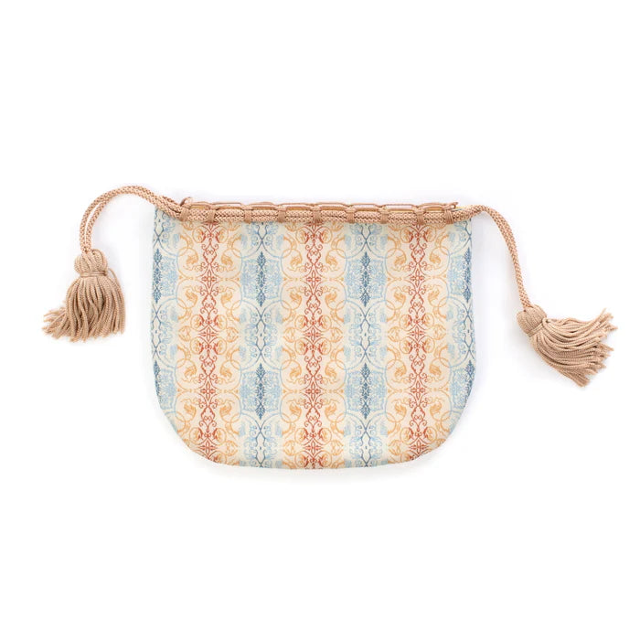 This listing is for a Nishijin-ori Small Drawstring Bag - Crumpled Pattern / Brown and Blue -.