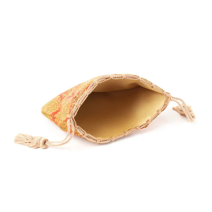 This listing is for a Nishijin-ori Small Drawstring Bag - Phoenix / Red -.