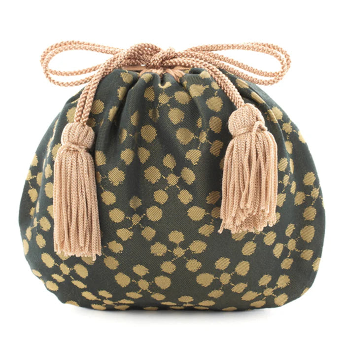 Nishijin-ori Small Drawstring Bag - Plum Blossom / Iron -, Made in Kyoto, Japan, Japanese traditional craft purse