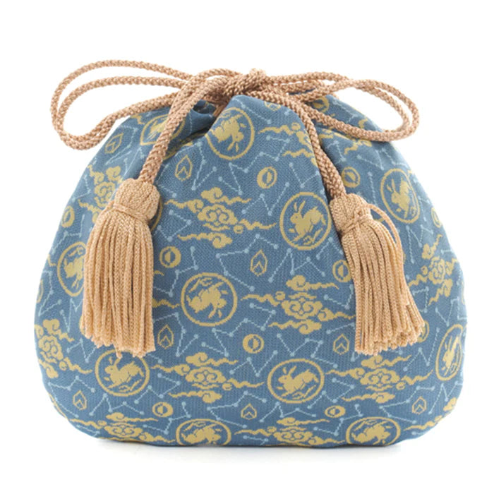 This listing is for a Nishijin-ori Small Drawstring Bag - Rabbit / Blue -.