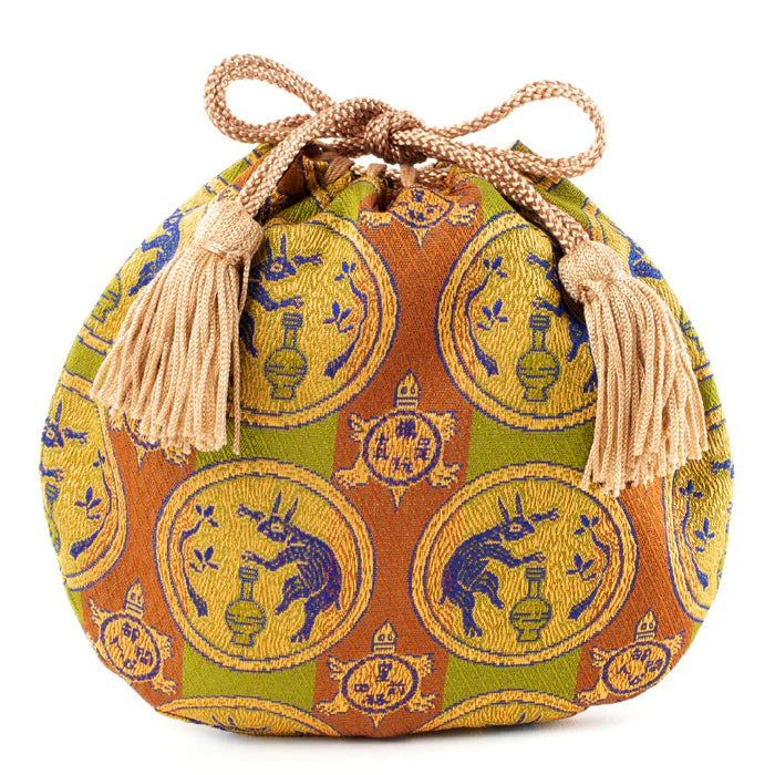 This listing is for a Nishijin-ori Small Drawstring Bag - Rabbit / Brown -.