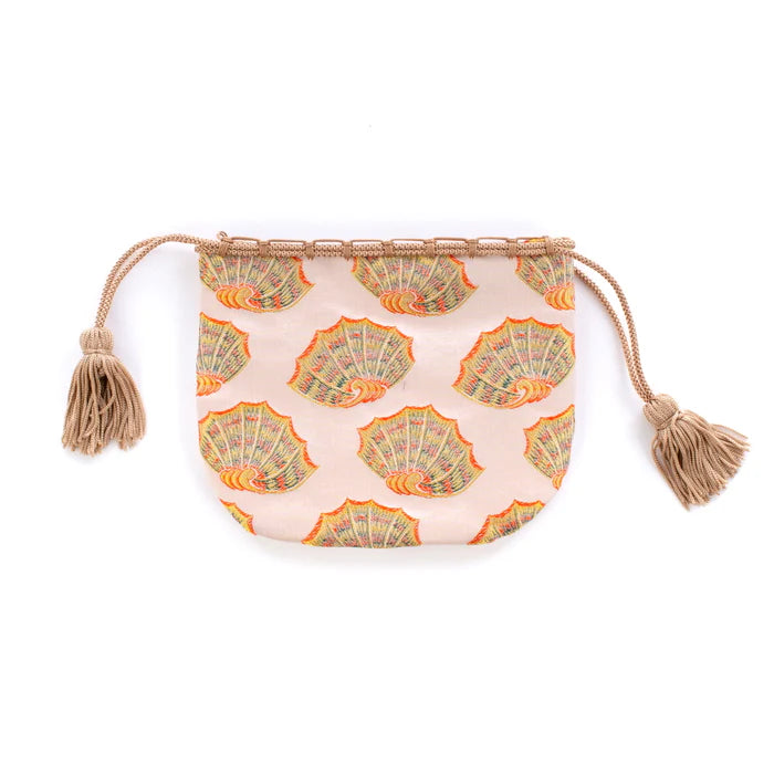 Nishijin-ori Small Drawstring Bag - Shell -, Made in Kyoto, Japan, Japanese traditional craft purse