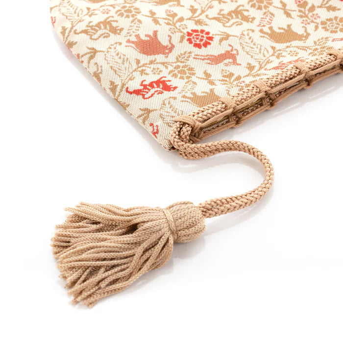 This listing is for a Nishijin-ori Small Drawstring Bag - Tiger / Cream -.