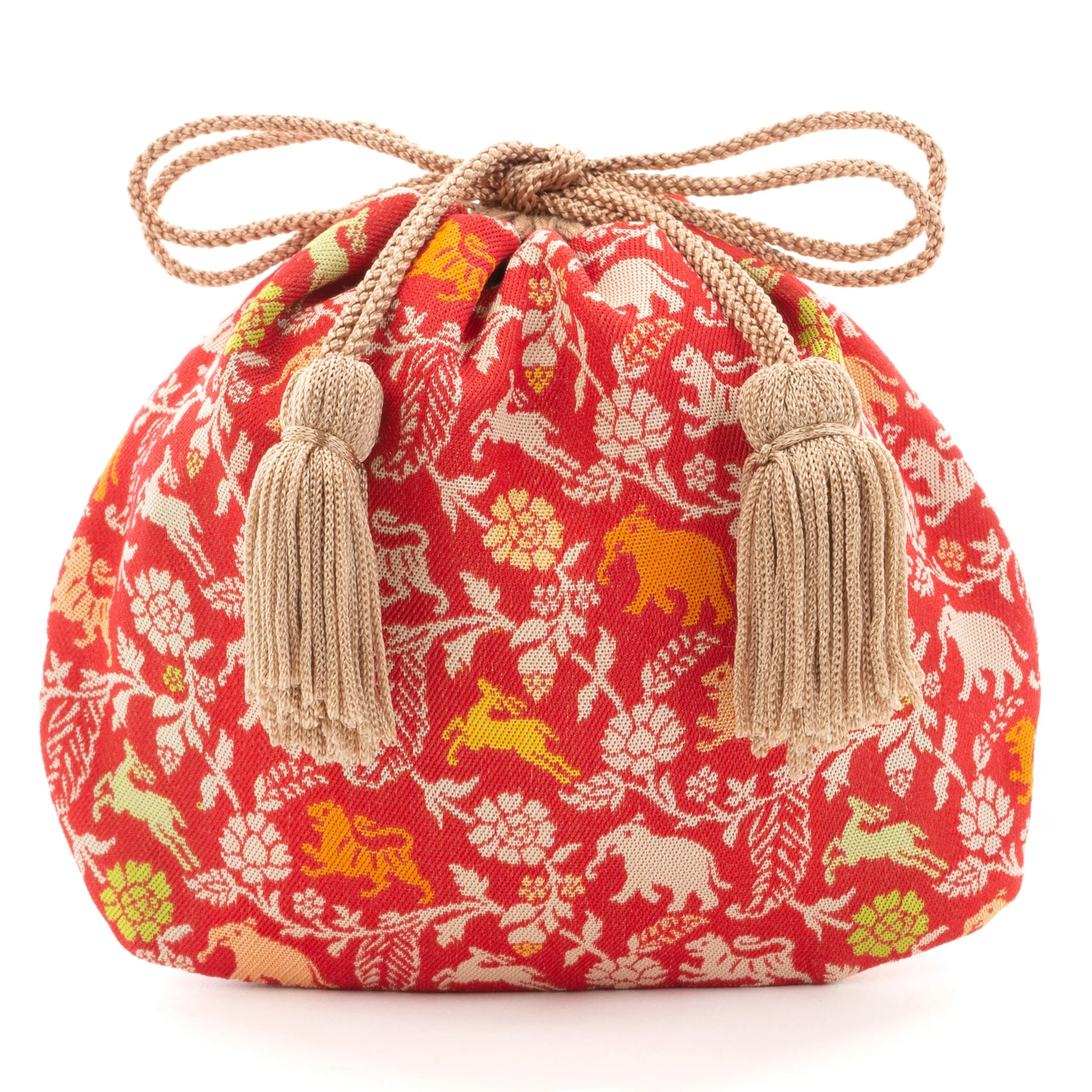 Nishijin-ori Small Drawstring Bag - Tiger / Red -, Made in Kyoto, Japan, Japanese traditional craft purse