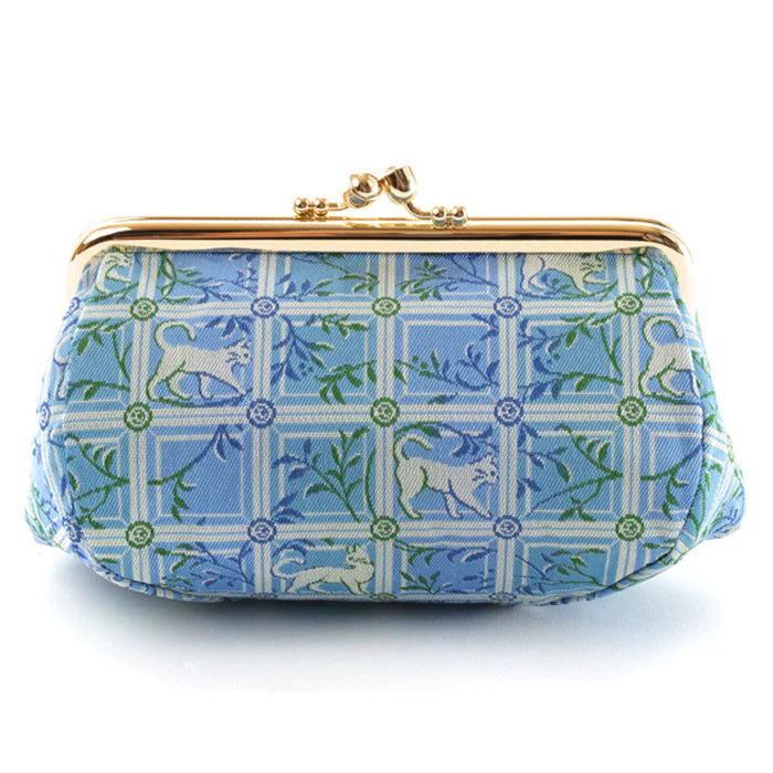 This listing is for a Nishijin-ori Small Pouch - Cat / Blue -.