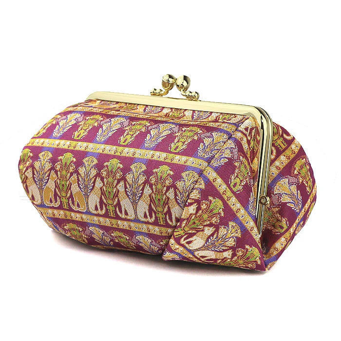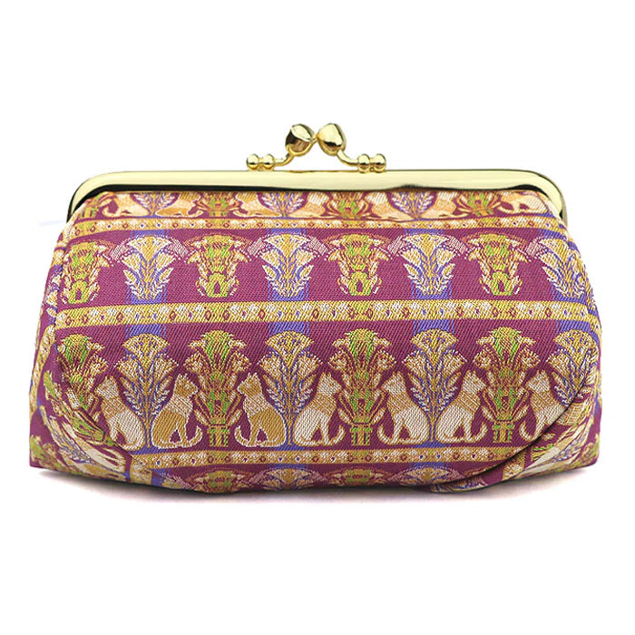 Nishijin-ori Small Pouch - Cat / Mauve -, Made in Kyoto, Japan, Cosmetic Pouch, Makeup Pouch, Japanese Gamaguchi Pouch, Travel Toiletry Pouch, Stationery Pouch, Bag organizer, Bag in Bag