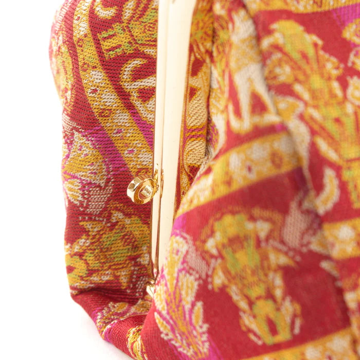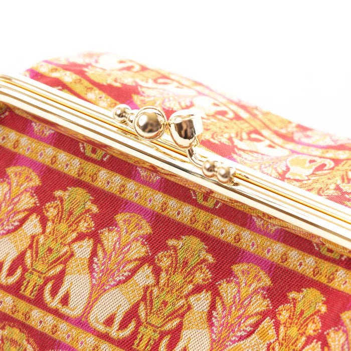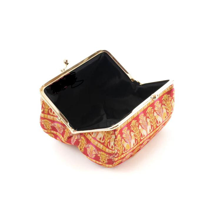 This listing is for a Nishijin-ori Small Pouch - Cat / Ruby -.