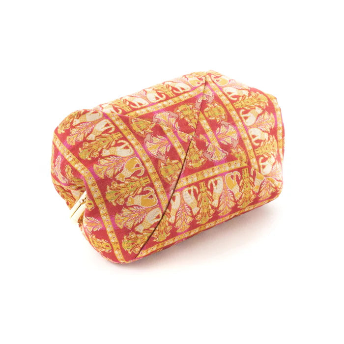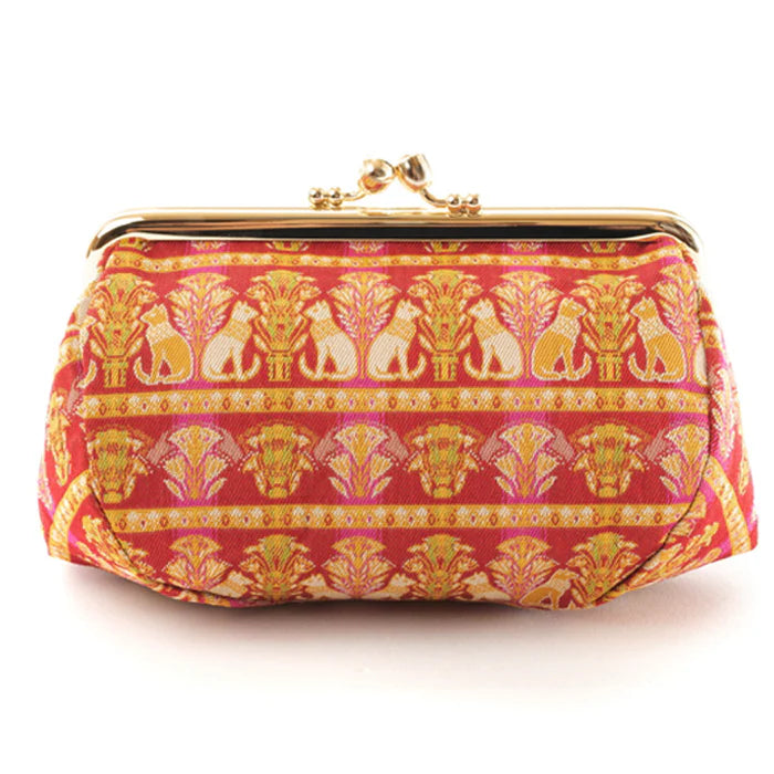 Nishijin-ori Small Pouch - Cat / Ruby -, Made in Kyoto, Japan, Cosmetic Pouch, Makeup Pouch, Japanese Gamaguchi Pouch, Travel Toiletry Pouch, Stationery Pouch, Bag organizer, Bag in Bag