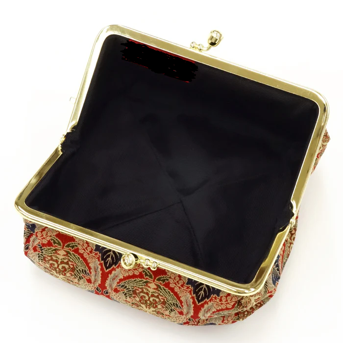 Nishijin-ori Small Pouch - Flower and Phoenix / Red -, Made in Kyoto, Japan, Cosmetic Pouch, Makeup Pouch, Japanese Gamaguchi Pouch, Travel Toiletry Pouch, Stationery Pouch, Bag organizer, Bag in Bag