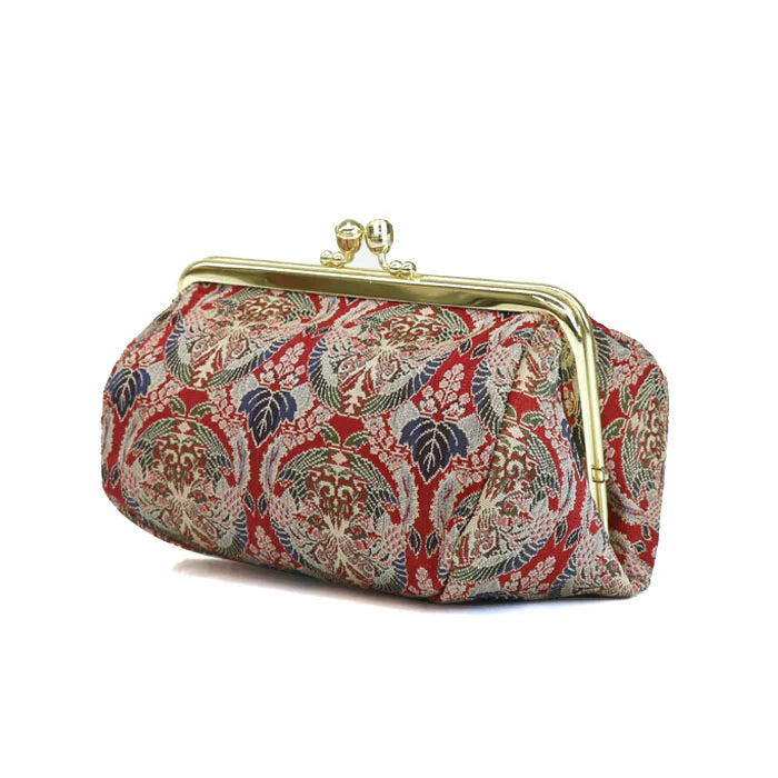 This listing is for a Nishijin-ori Small Pouch - Flower and Phoenix / Red -.