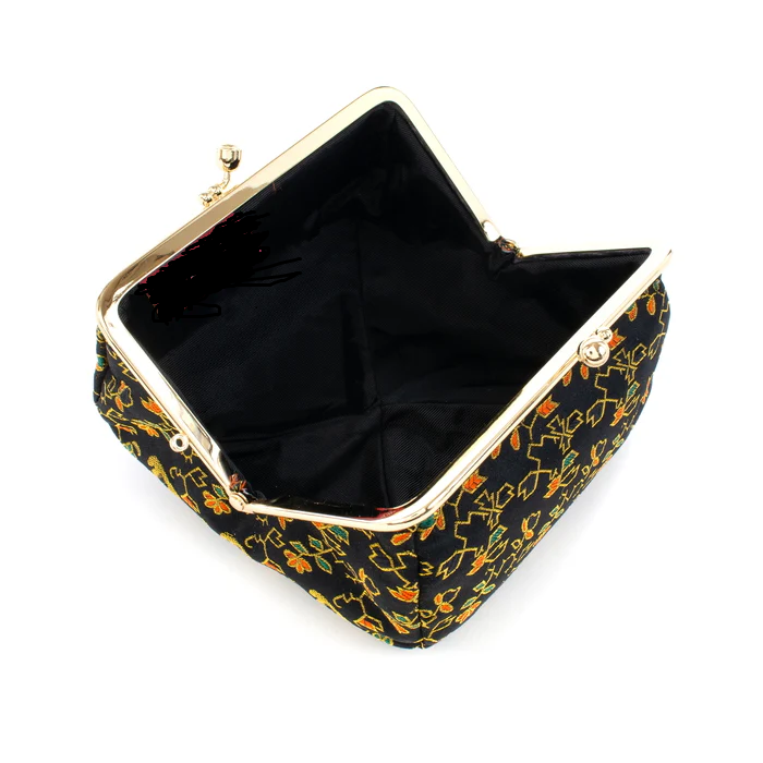 This listing is for a Nishijin-ori Small Pouch - Flower, Fruit, and Tree / Black -.