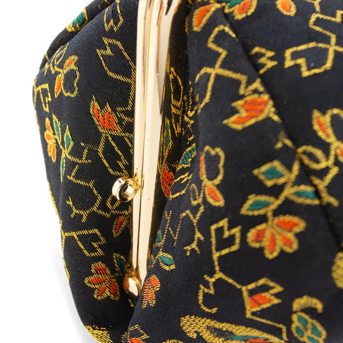 Nishijin-ori Small Pouch - Flower, Fruit, and Tree / Black -, Made in Kyoto, Japan, Cosmetic Pouch, Makeup Pouch, Japanese Gamaguchi Pouch, Travel Toiletry Pouch, Stationery Pouch, Bag organizer, Bag in Bag