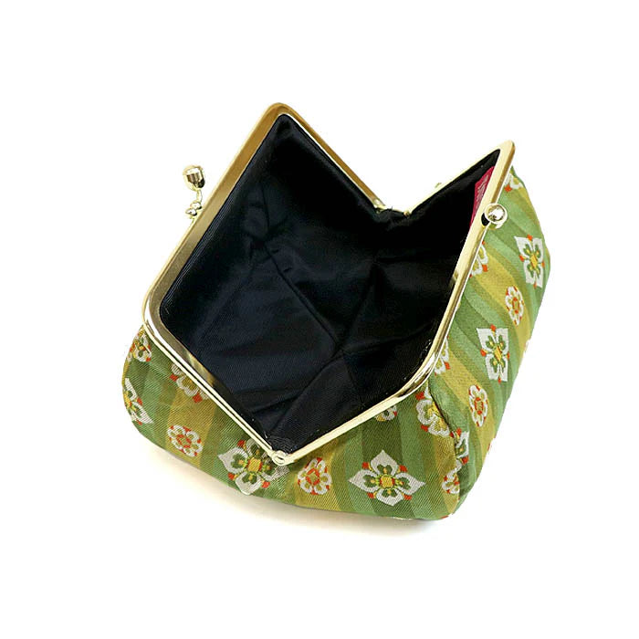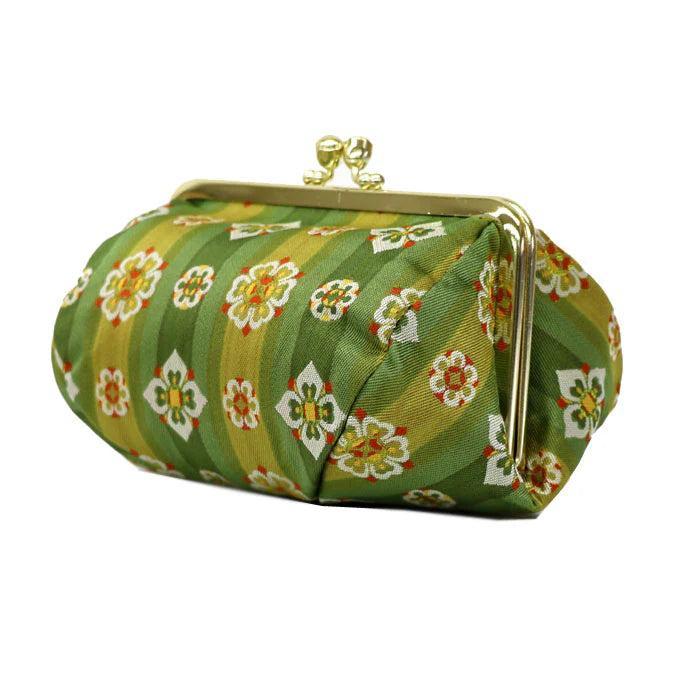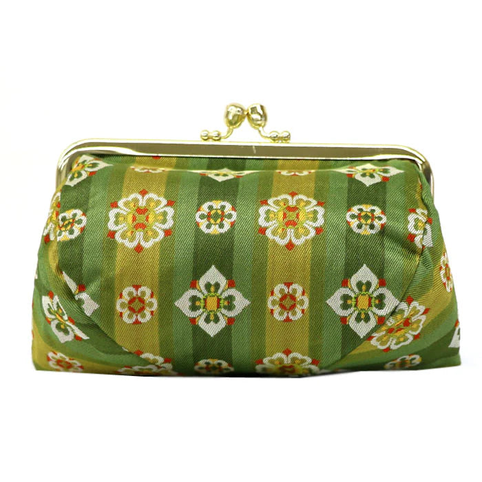 Nishijin-ori Small Pouch - Flower / Green -, Made in Kyoto, Japan, Cosmetic Pouch, Makeup Pouch, Japanese Gamaguchi Pouch, Travel Toiletry Pouch, Stationery Pouch, Bag organizer, Bag in Bag