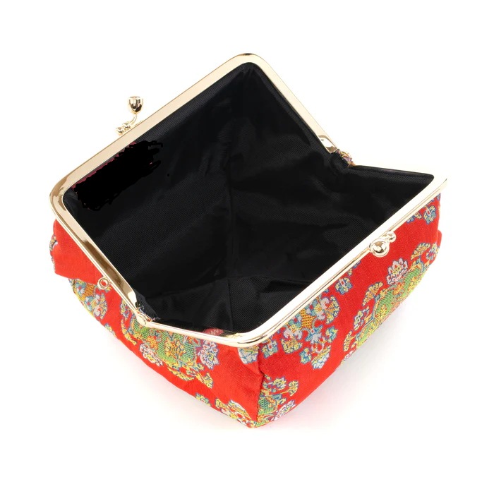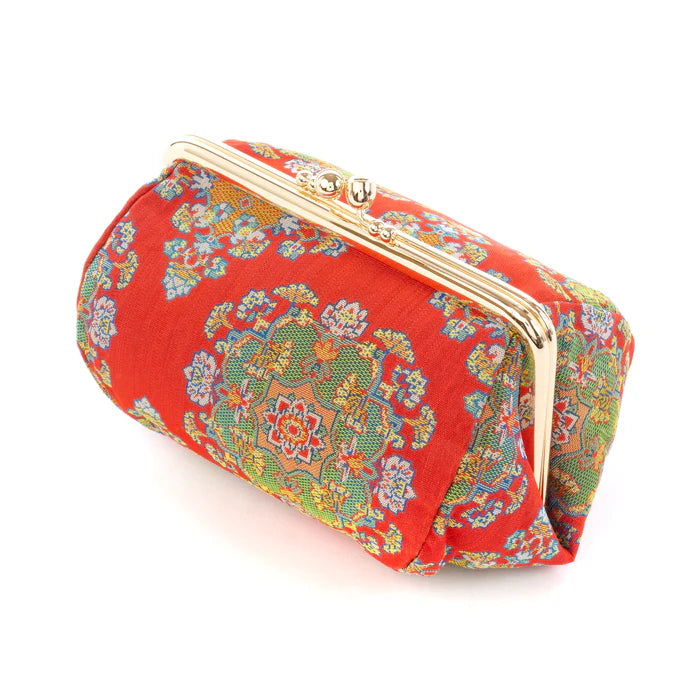 ■ Nishijin-ori Small Pouch - Flower / Red -, Made in Kyoto, Japan, Cosmetic Pouch, Makeup Pouch, Japanese Gamaguchi Pouch, Travel Toiletry Pouch, Stationery Pouch, Bag organizer, Bag in Bag