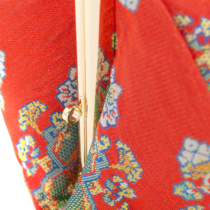 Nishijin-ori Small Pouch - Flower / Red -, Made in Kyoto, Japan, Cosmetic Pouch, Makeup Pouch, Japanese Gamaguchi Pouch, Travel Toiletry Pouch, Stationery Pouch, Bag organizer, Bag in Bag