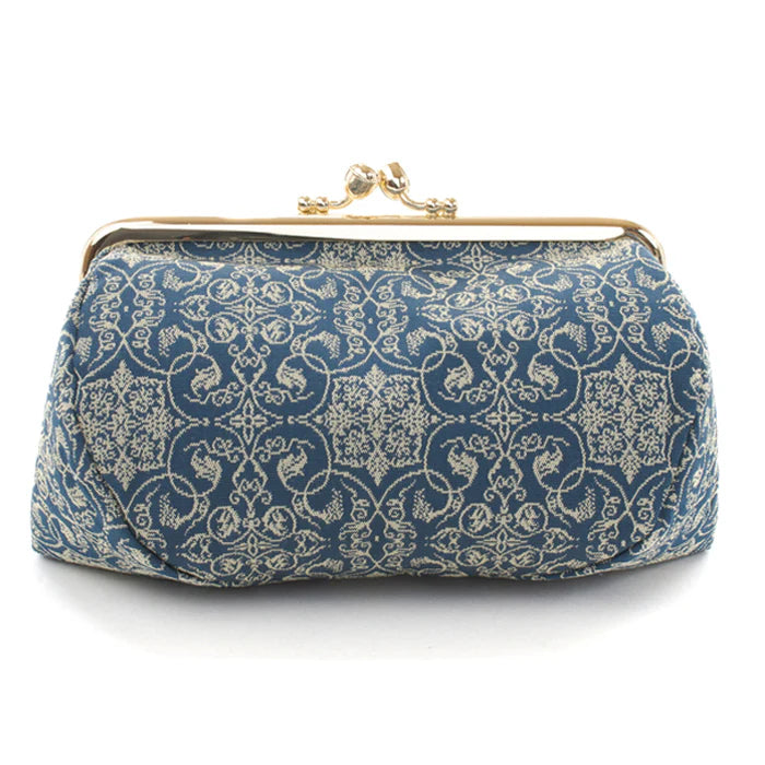 This listing is for a Nishijin-ori Small Pouch - Grapevine / Navy Blue -.