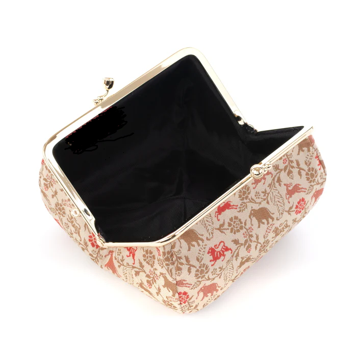 ■ Nishijin-ori Small Pouch - Tiger / Cream -, Made in Kyoto, Japan, Cosmetic Pouch, Makeup Pouch, Japanese Gamaguchi Pouch, Travel Toiletry Pouch, Stationery Pouch, Bag organizer, Bag in Bag