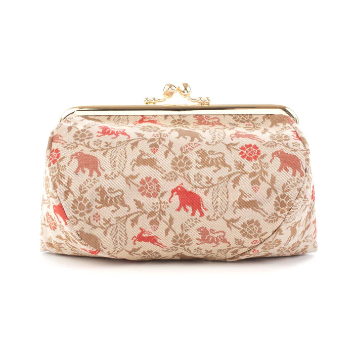 Nishijin-ori Small Pouch - Tiger / Cream -, Made in Kyoto, Japan, Cosmetic Pouch, Makeup Pouch, Japanese Gamaguchi Pouch, Travel Toiletry Pouch, Stationery Pouch, Bag organizer, Bag in Bag