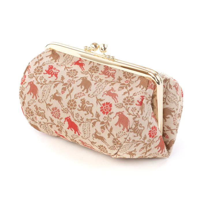 This listing is for a Nishijin-ori Small Pouch - Tiger / Cream -.