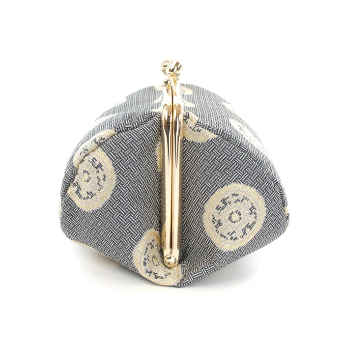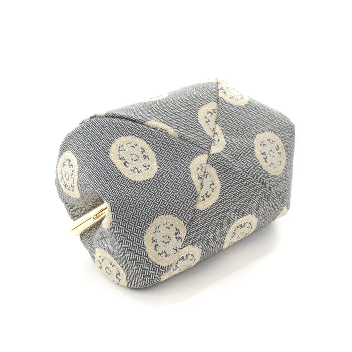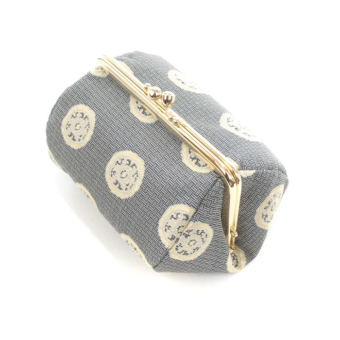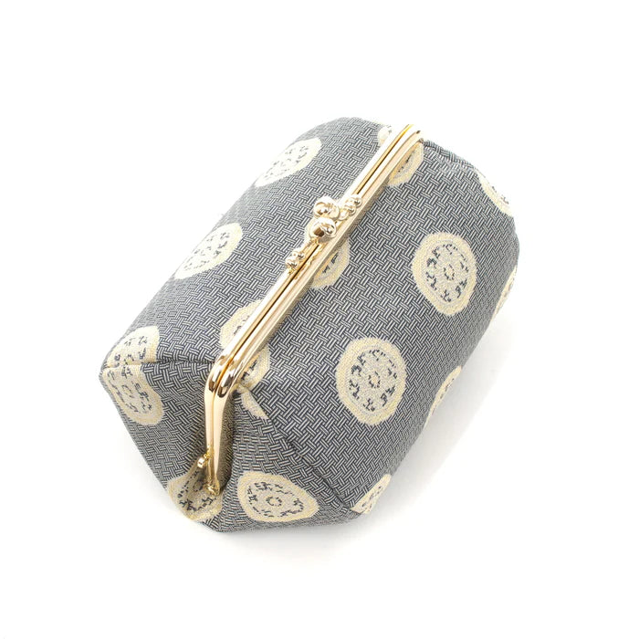 Nishijin-ori Small Pouch - Wheel-shaped Treasure / Gray -, Made in Kyoto, Japan, Cosmetic Pouch, Makeup Pouch, Japanese Gamaguchi Pouch, Travel Toiletry Pouch, Stationery Pouch, Bag organizer, Bag in Bag
