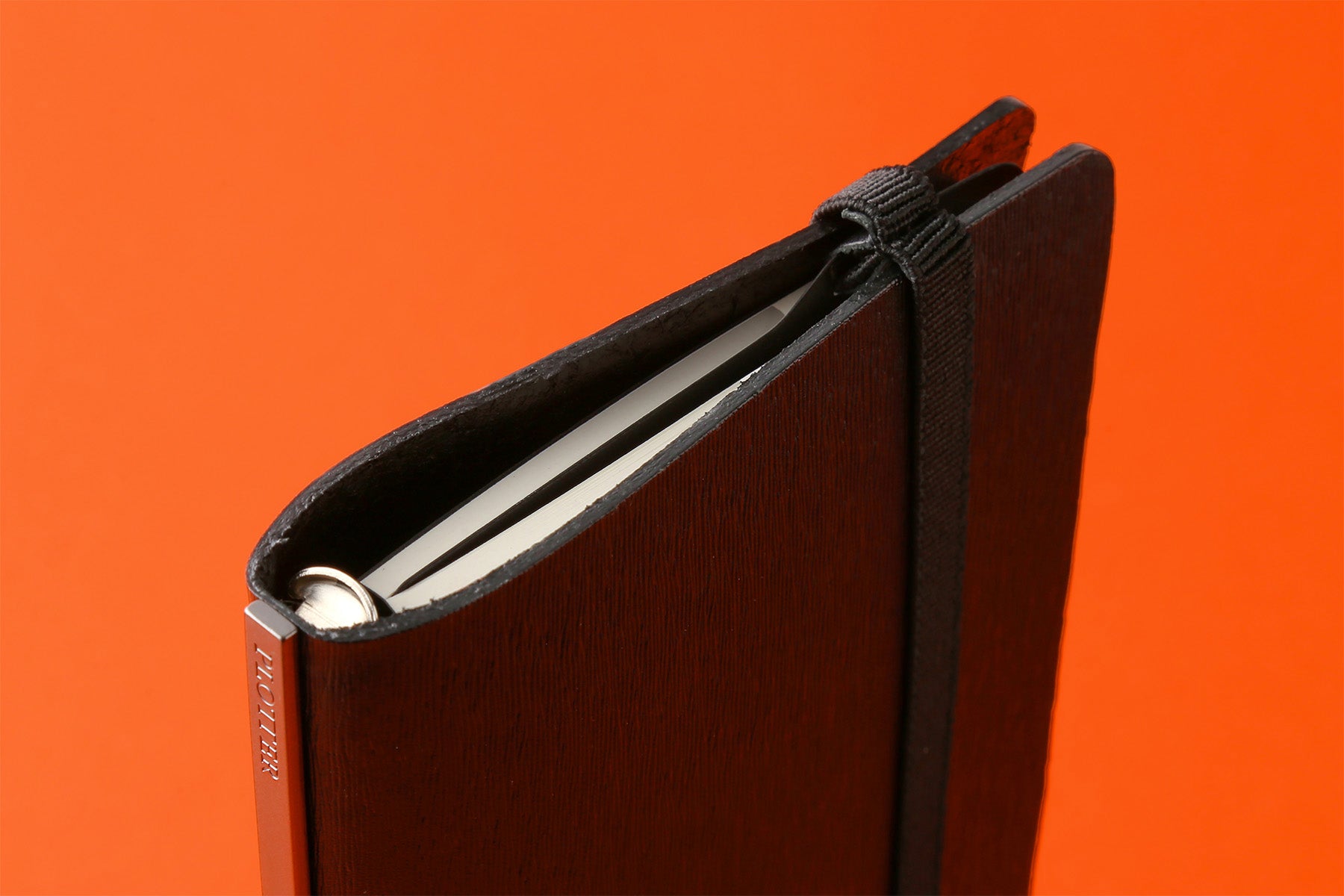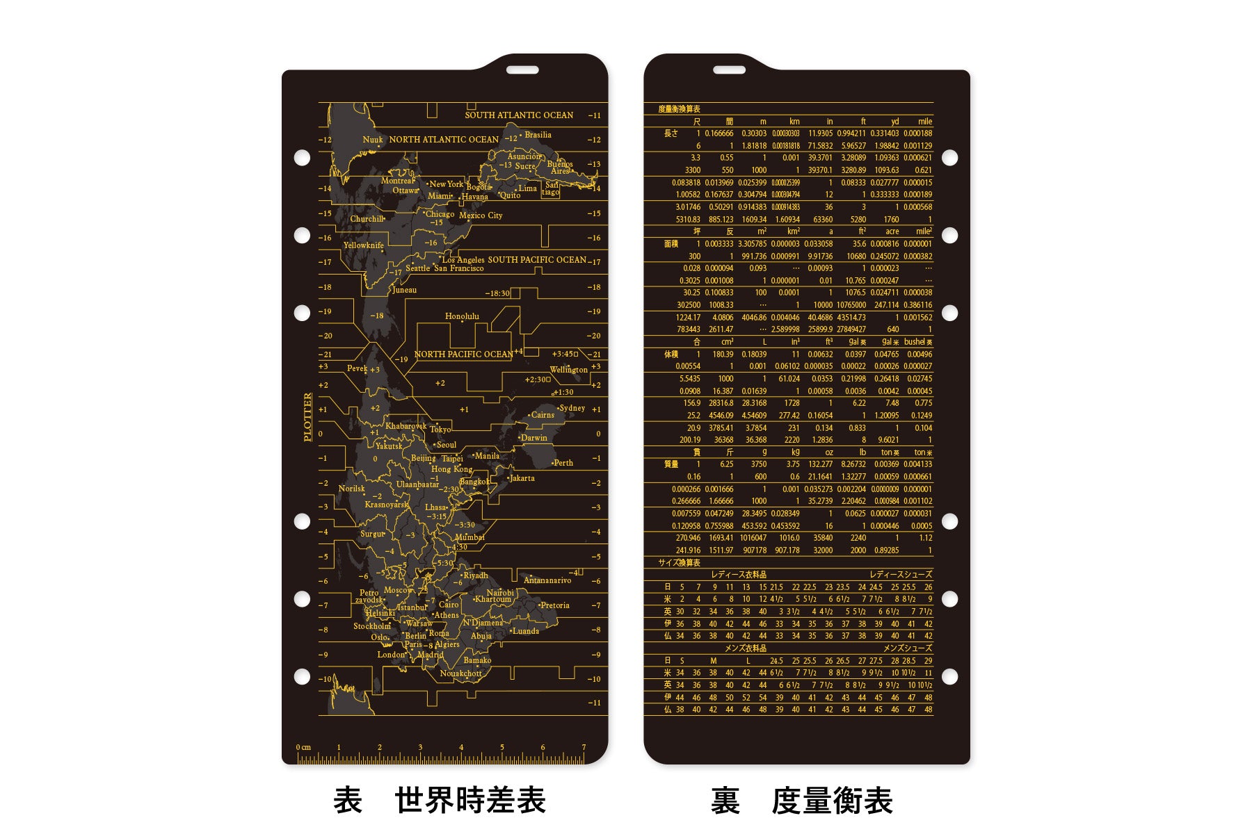 A lifter with an elastic band that securely holds the Leather Binder close. The Lifter is designed with the world map, time difference table, and other conversion metrics, all screen printed in matte gold by hand. Enjoy the combination of functionality and design to invigorate your creative flow.