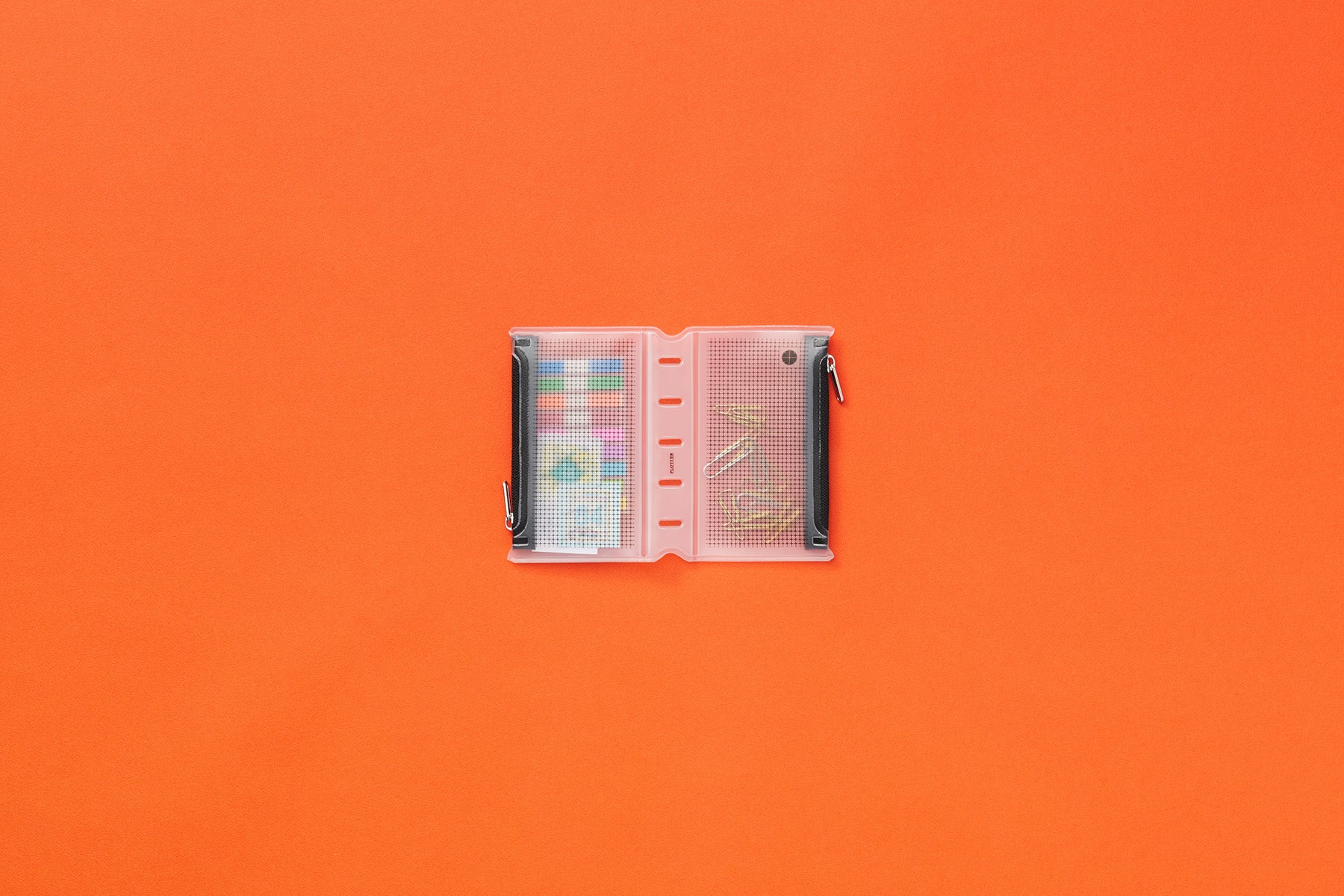 A smart zipper pouch solution with just the right amount of transparency. The Fastener Case is made with a translucent material with a grid pattern – the subtleness reveals and conceals the contents of the case at the same time. You can quickly find what you need, without being too visible.
