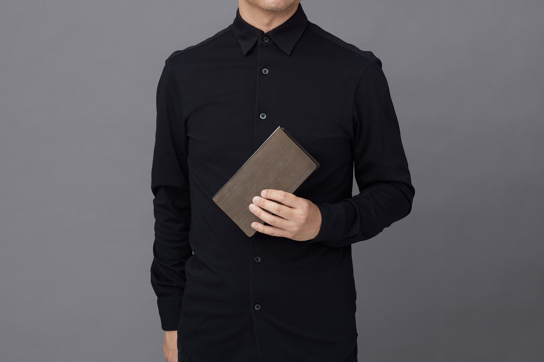 Horse Hair II is a PLOTTER original leather that was revived from its first generation when PLOTTER launched in 2017. Inspired by the texture of horsehair, the vegetable-tanned leather went through a manual process by craftsmen to create a scratched and raised striped texture to finish the surface of the leather. A generous amount of oil is added to the tanning process to achieve an aging effect that will tickle the hearts of leather lovers. The more you use the leather, the more it will gain an elegant luster. The second generation includes four elegant and cool color options: Black, navy, gray, and green. The unique leather expression is paired with an understated matte black just like the original series, making it a fashionable piece for your daily creative practice. The narrow size is thin and portable, you can even fit it inside a jacket pocket when you carry it on the go. It is the perfect size for people who wants a planner or notebook with you at all times for when inspiration strikes!