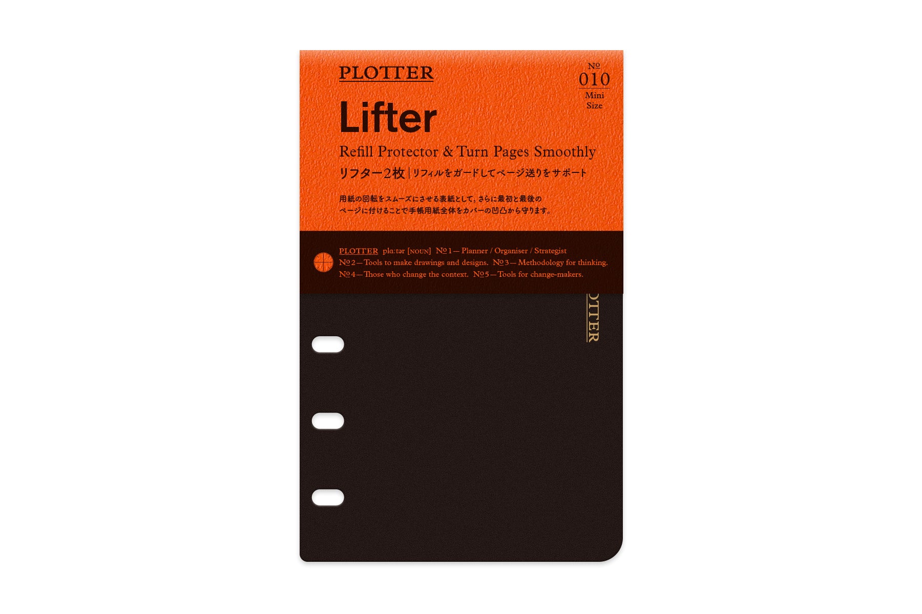 Lifters can protect the refills from the contours of the leather covers simply by placing them at the beginning and end of the Leather Binder. You can also use it as dividers between pages to easily access the section you need. Lifters can also be used as pencil boards because of their smooth and sturdy surface. PLOTTER logo is screen printed in matte gold on each Lifter.